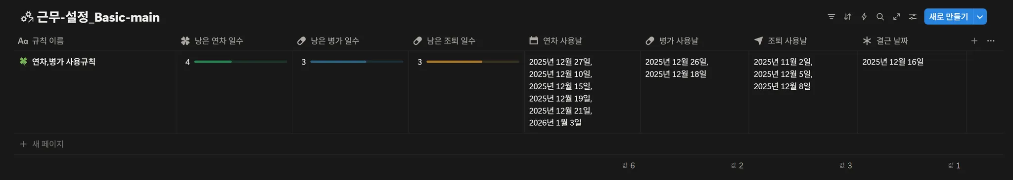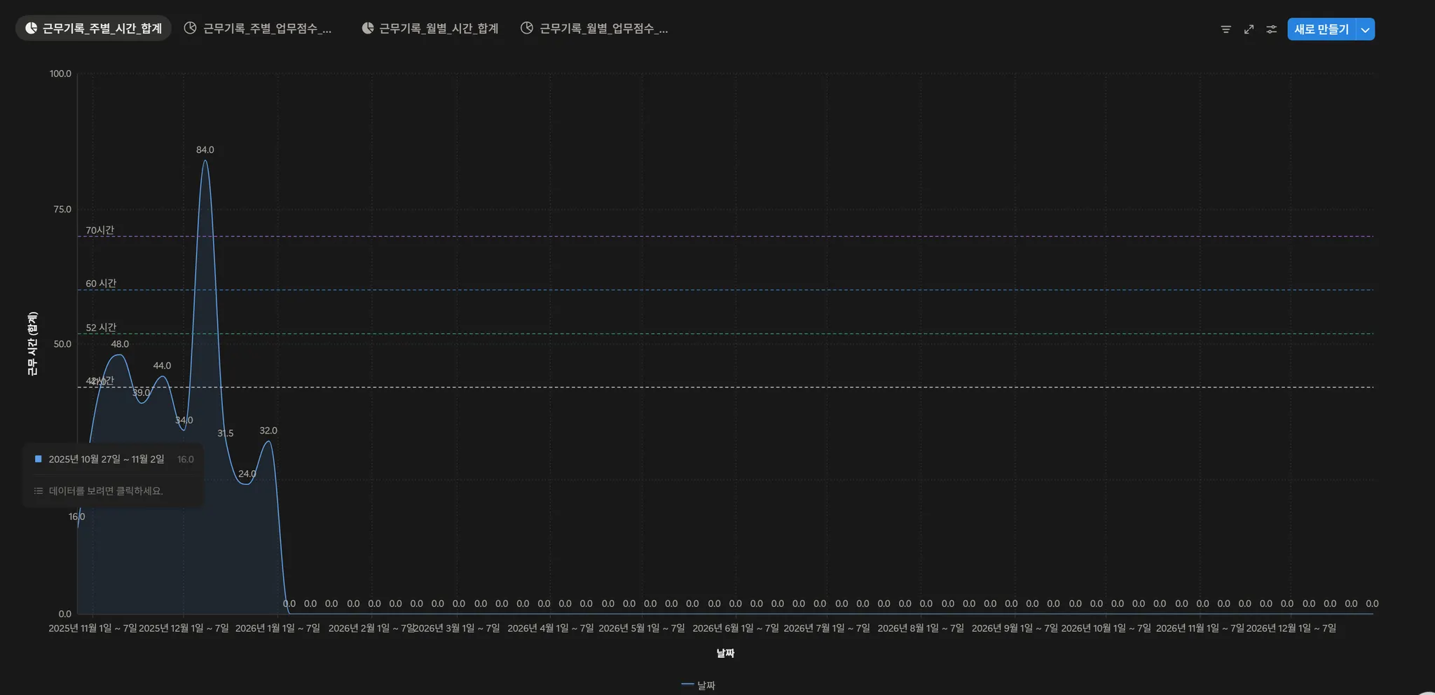 출석/결근/연차/병가/휴일 차트 보기 ( 주/월 )